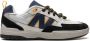 Zwart, leigrijs, kalfssuède, vlakken met colourblocking, geribbelde vlakken, logopatch aan de zijkant, logopatch op de tong , ronde neus, vetersluiting aan de voorkant, binnenzool met merk en chunky rubberen zool