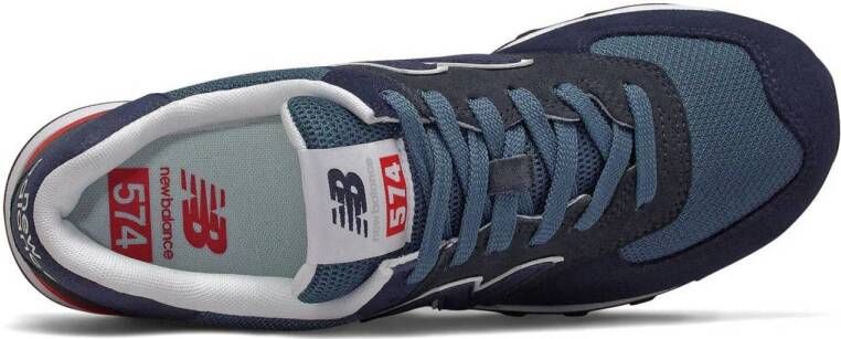 Deze 574 herensneakers van New Balance zijn een knipoog naar de stijl van de oude school en zijn klassiekers. Oorspronkelijk een hybride van twee afzonderlijke sneakers, hebben deze samengestelde essentials al sinds '88 impact. Suède en mesh panelen aan de bovenkant houden de voeten fris en ondersteund, terwijl de EVA Encap-tussenzool van de 574, gecoat met polyurethaan, lichtgewicht demping en extra schokabsorptie biedt. Met een stevige rubberen buitenzool voor grip bij elke stap, hadden deze Navy kicks rode highlights en zijn afgewerkt met het wereldberoemde 'N'-logo van New Balance op de zijwanden, samen met synthetische ondersteuning voor de hiel.. Material: Bovenwerk van leer en textiel / synthetische zool