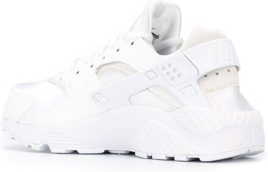 'Air Huarache Run' sneakers van Nike uitgevoerd in leder voorzien van ronde neus, veters aan voorkant, logo embleem op de tong, inzet met geometrische patroon, leren panelen en geribbelde rubberen zool.