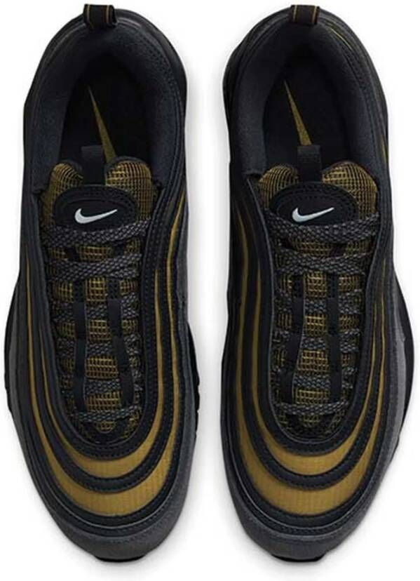 Gestroomlijnd. Stijlvol. Eenvoudig. Het op water geïnspireerde design van de Air Max 97 brengt je waar je wilt, of je nu gaat hardlopen of de stad in gaat. Om hem af te maken, zorgt de Nike Air demping over de hele lengte voor optimaal comfort. Air Max 97Volgens de legende is de Air Max 97 geïnspireerd op het bliksemsnelle vervoersnetwerk in Tokio. De Air Max 97 wordt ook wel de 'silver bullet' genoemd. De schoen heeft innovatieve Air demping over de hele lengte, en het strakke, reflecterende design maken het de schoen voor de toekomst. Nike Air demping (de eerste in zijn soort) is oorspronkelijk ontworpen voor performancegericht hardlopen en combineert optimaal comfort met een sportieve stijl.Een verborgen vetersysteem zorgt voor een gestroomlijnde look.De rubberen buitenzool geeft extra grip en stevigheid., ProductgegevensMiddenzool van foamNiet bedoeld als beschermende gear (PPE)