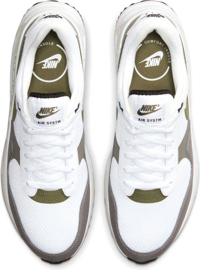Deze sneaker voor heren van Nike heeft een bovenwerk van mesh met leer. Het model is voorzien van een vetersluiting en een platte zool. In de zool zit een Air-unit, dat zorgt voor een flexibele veerkracht onder de hiel. De sneaker heeft een voering van mesh en een uitneembaar vochtregulerend voetbed.details van deze sneaker:• stijlnaam: Nike Air Max Systm• ademend bovenwerk van mesh met leer• elastische veter met klittenband voor makkelijke aan en uit trekken• retro
