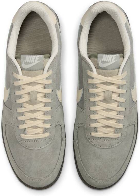 IJzeren standvastigheid De Nike Field General-sneakers domineerden ooit het veld. Nu geven ze je dagelijkse outfits diezelfde winnaarsmentaliteit. Het sude bovenwerk ziet er vintage uit en is ook nog eens superduurzaam, terwijl de buitenzool met wafelprofiel je geweldige grip en tractie geeft. De volledig ingestikte cupzool maakt deze schoenen extra stevig, terwijl het metalen bedeltje ze een unieke look geeft. De gewatteerde kraag zit lekker om je enkel en de tussenzool van foam zorgt dat je elke stap zacht landt. Geef vorm aan je persoonlijke stijl met de Nike Field General. Kenmerken van de Nike Field General: * Bovenwerk van sude * Volledig ingestikte cupzool * Metalen bedel * Gevoerde kraag * Tussenzool van schuim * Buitenzool met wafelprofiel