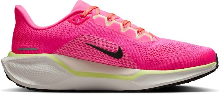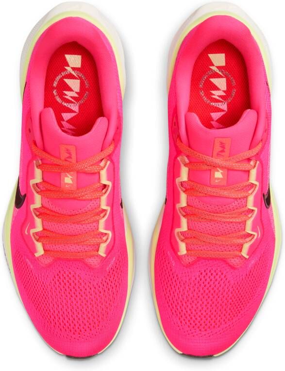 De responsieve demping van de Pegasus zorgt voor extra energie tijdens je runs op straat. Dankzij de dubbele Air Zoom units en een middenzool van ReactX foam is de schoen licht en profiteer je van energieteruggave. Bovendien zorgt verbeterde, speciale mesh op het bovenwerk voor minder gewicht en meer ventilatie. Pluspunten:Vernieuwd, ventilerend bovenwerk van speciale mesh De middenzool van ReactX foam omsluit de voorvoet en de Air Zoom units in de hak zorgen voor extra energie. Kenmerkende rubberen buitenzool met wafelpatroon biedt grip en flexibiliteit Zachte kraag, tong en inlegzool voor een goede, comfortabele pasvorm Wat is er nieuw? De gloednieuwe middenzool van ReactX foam is 13% responsiever dan eerdere React technologie. ReactX foam is gemaakt voor performance, en met de planeet in gedachten. Het is ontworpen om de CO2-voetafdruk van een paar middenzolen met ten minste 43% te verminderen dankzij een productieproces dat minder energie vereist dan bij het eerdere React foam. De CO2-voetafdruk van ReactX is gebaseerd op een beoordeling van de volledige levenscyclus, uitgevoerd door PR Sustainability B.V en Intertek China. Andere componenten van de middenzool zoals Air bags, platen of andere foamformuleringen zijn niet onderzocht.