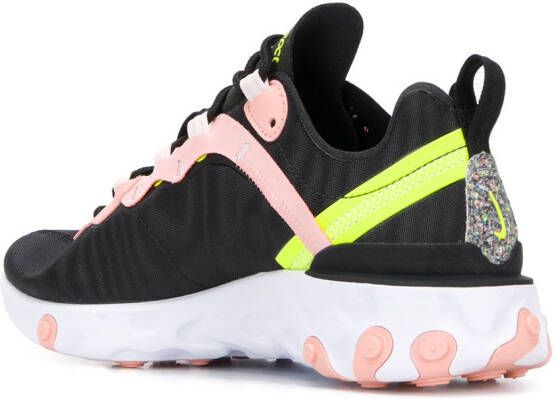 React Element 55 sneakers van Nike voorzien van kenmerkende Nike swoosh, witte rubberen zool, leren panelen, lusje aan de achterkant, veters aan voorkant en contrasterende hak
