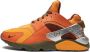 Oranje, geel, mesh vlak, kenmerkend Swoosh logodetail, ronde neus, vetersluiting aan de voorkant, logopatch op de tong , binnenzool met merk en rubberen zool.
