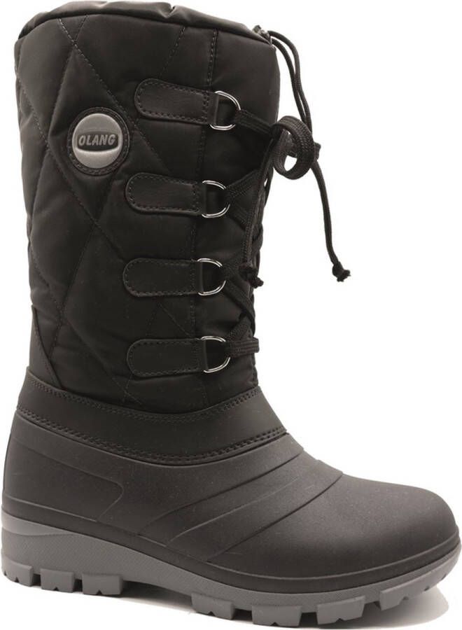 Olang Fantasy stoere snowboots met vetersluiting voor jongens en meisjes in de kleur zwart. Deze warme snowboots zijn gemaakt van polyester met rubber. Op de zijkant een rubberen patch met de tekst OLANG en de bovenkant heeft een aantrekkoord voor een goede aansluiting.