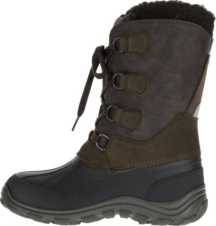 Heren snowboots X-cursion van Olang. Deze laren hebben een hoge schat vervaardigd van geolied leer. De laars heeft een rubberen voet wat ervoor zorgt dat deze goed waterdicht is. De zool heeft een grof profiel. De schacht heeft een vetersluiting voor een makkelijke instap. De voering is gemaakt van wol