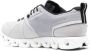 Grijs/wit, logoprint aan de zijkant, waterbestendig, mesh vlak, vetersluiting aan de voorkant, ronde neus, binnenzool met merk en dikke rubberen zool.