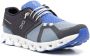 Blauw, ronde neus, mesh vlak, vetersluiting aan voorkant, tong met logoprint, binnenzool met logo en geribbelde rubberen zool.