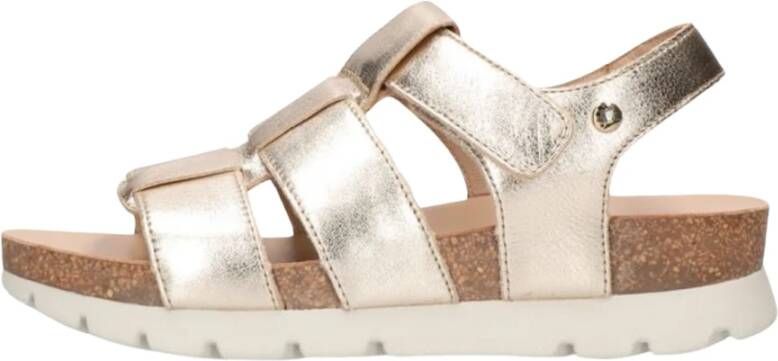 Stap in stijl met de goudkleurige leren sandalen SAMMY van PANAMA JACK. Deze trendy schoenen zijn perfect voor een dagje shoppen of een zomerse wandeling. De boven kant bestaat uit drie bandjes en zijn gemaakt van goudkleurig leer, het bandje rond de hiel zorgt dat de sandaal goed aansluit aan de voet. Je stapt gemakkelijk in de zachte leren binnenwerk met de klittenbandsluiting en voel de comfort van de kurkenzool met rubberen loopzool. Met deze sandalen ben je klaar voor elke gelegenheid. Laat je voeten stralen en geniet van het comfort en de kwaliteit die PANAMA JACK te bieden heeft.