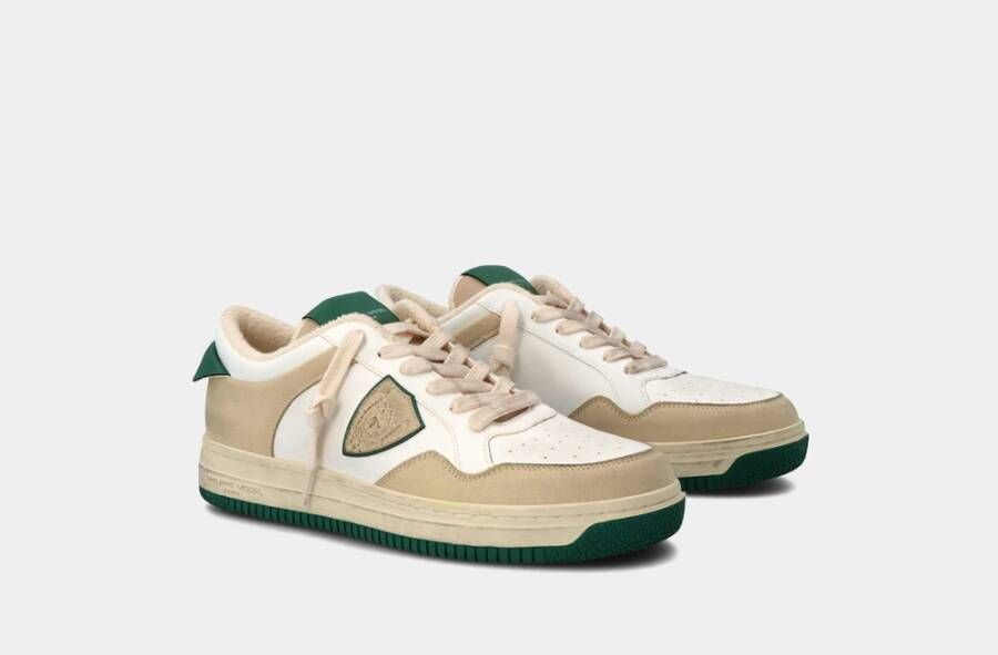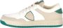 Sneakers voor heren Lyon Recycle Mixage LYLU-CX10 van het Franse sneakerlabel Philippe Model. Dit basketmodel is gemaakt van gerecycled afval, polyester en organisch katoen in wit, beige en groen met een vintage wassing. De badge aan de zijkant is signature voor het merk. Op de tong, zool en de hielcap zijn merklogo's zichtbaar. De binnenkant is in badstof uitgevoerd en voorzien van een uitneembaar voetbed. De dirty rubberen 3 cm zool in off-white en groen heeft een fijn profiel. Used gebroken witte veters maken de vegan sneakers compleet. Kleur: wit/beige/groen. (Blanc/Vert)