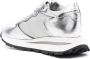 Zilver, kalfsleer, design met vlakken, logopatch, ronde neus, vetersluiting aan de voorkant en geribbelde rubberen zool.