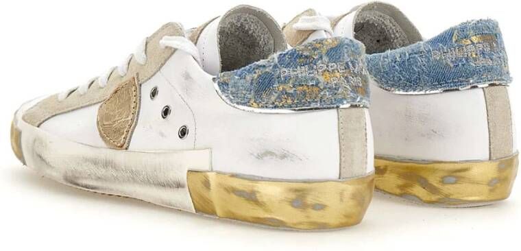 Upgrade je sneakerstijl met deze Philippe Model sneakers van kalfsleer. Handgemaakte vuil-details voegen een unieke touch toe, terwijl de gelamineerde denim hak een edgy stijl brengt. De gewatteerde en verwijderbare inlegzool zorgt voor comfort, en de ademende katoenen sponsvoering houdt je voeten fris. Afgewerkt met een rubberen zool met een hoogte van 2 cm, zijn deze sneakers een perfecte mix van mode en functionaliteit. Kleur: Wit, Denim. Materialen: 85% Kalfsleer, 10% Textiel, 5% Geitenleer.