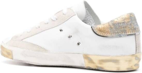 Verhoog je streetstyle met deze Philippe Model sneakers voor vrouwen. Gemaakt van zacht wit kalfsleer, hebben deze vintage-genspireerde schoenen handgemaakte markeringen, een gelamineerde denim hielkap en een gembosseerd zijpaneel met een versleten afwerking. De asymmetrische handgemaakte zoolband voegt een iconisch tintje toe aan dit ontwerp, perfect voor de coolste spirits