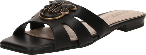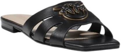 Stap de zomer in met de Sd 0313P003Z99 slippers van Pinko. Met een chique gouden love birds logo en een comfortabele antislip beige zool zijn deze stijlvolle zwarte leren slippers perfect voor elke outfit. Verhoog moeiteloos je zomergarderobe..