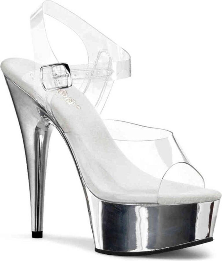 Pleaser DELIGHT-608 Sandaal met enkelband 38 Shoes Zwart Transparant