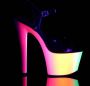 7 (17.8cm) Heel, 2 3/4 (7cm) Platform Ankle Strap Sandal Featuring Neon UV Reactive Multicolored PlatformMateriaal:Imitatieleer - Semi-Polyurethaan - Polyurethaan - Suede - Rubber