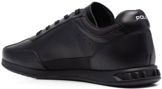 Zwart, kalfsleer, logopatch aan de zijkant, ronde neus, veters aan voorkant, gewatteerde enkel en platte rubberen zool