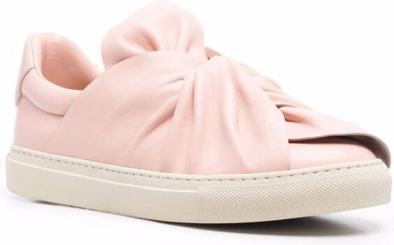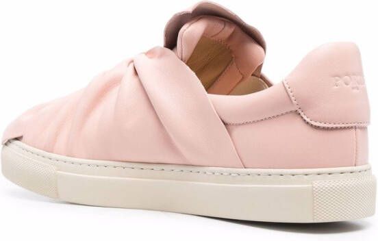 Strikdetail, platte rubberen zool, ronde neus en slip-on stijl. Materiaal: leder.