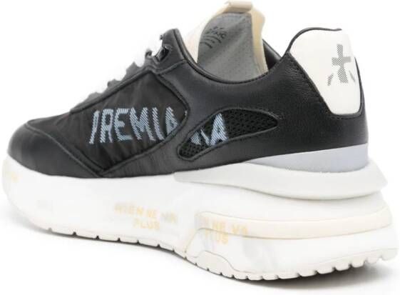 zwart kalfsleer gladde korrel ronde neus contrasterend vlak logopatch op de tong logo applicatie aan de zijkant logo op het hielstuk leren binnenzool met logo PEVA zool met logoprint veters aan voorkant
