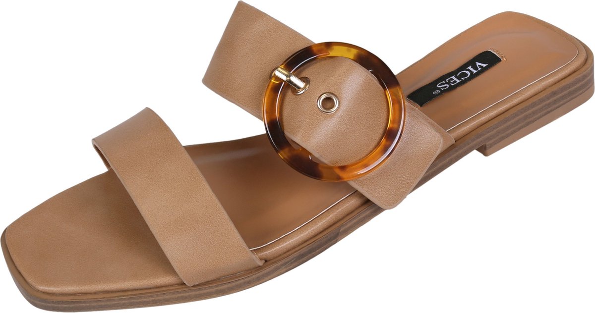 Sarcia.eu Beige slippers voor dames met decoratieve gesp VICES