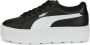 Deze sportieve zwarte Puma sneakers voor dames hebben een bovenwerk gemaakt van een combinatie van leer en synthetisch materiaal. De voering is gemaakt van textiel en de zool is gemaakt van kunststof, met een hoogte van 4 cm. De schoen heeft een verharde hiel en een uitneembaar, gepolsterd voetbed voor optimaal comfort. Hij heeft ook een vetersluiting