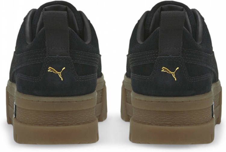 Geef je sneak-rotatie een frisse upgrade met deze Mayze-sneakers voor dames van PUMA. Deze zwarte sneaker is gemaakt met een suède bovenwerk voor comfort en ondersteuning en heeft een geweven treklipje voor gemakkelijk aan- en uittrekken. Ze zitten op een stevige tussenzool voor een gedempte stap, terwijl de rubberen zool grip op het volgende niveau biedt wanneer je de straat op gaat. Met een ton-sur-ton vetersluiting en gewatteerde enkelkraag om je in te sluiten, zijn deze treden voorzien van PUMA Cat-branding op de tong, hiel en zijwanden.. Material: Bovenwerk van leer en textiel/synthetische zool