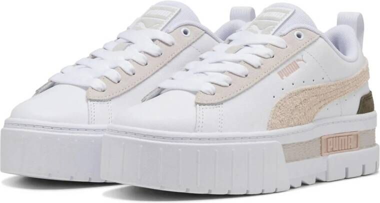 PRODUCTVERHAAL Voor de hype-meisjes, de straatliefhebbers, de trendsetters de Mayze. Dit opvallende model heeft een gelaagde zool voor een look die een statement maakt, hoe je het ook draagt. We gaan voor tijdloos met dit paar. Een klassieke basiskleur en een contrast over de PUMA Formstrip en hiel. Wat valt er niet van te houden? DETAILS Bovenwerk van leerOverlays van sudeRubberen zoolPUMA Formstrip op de beide zijkantenPUMA Cat-logo op de hiel