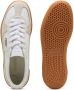 De PUMA Palermo 396464-18 is terug van weggeweest. Deze sneaker brengt een eerbetoon aan de terrace-stijl uit de jaren'80 en heeft een cleane, frisse uitstraling dankzij het witte sude bovenwerk met lichtgrijze sude overlays. De zachtgroene PUMA-streep opzij geeft de schoen een subtiele vintage vibe. De gumkleurige zool benadrukt de