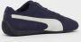 Haal een klassieker terug naar de straten met deze junior Speedcat OG sneakers van PUMA. Deze vernieuwde iconen in marineblauwe kleurstelling hebben een stevig sude bovenwerk met gestroomlijnde designlijnen voor een authentieke look en feel. Ze zijn geplaatst op een lage IMEVA-middenzool voor lichtgewicht demping, terwijl de op banden genspireerde rubberen buitenzool zorgt voor uitstekende grip. Afgewerkt met een witte Formstrip op de zijwand, een geborduurd PUMA Cat-logo op de ronde neus en verder PUMA-branding.. Material: Bovenwerk van leer/synthetische zool