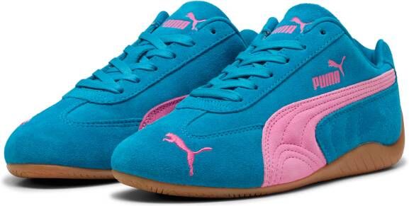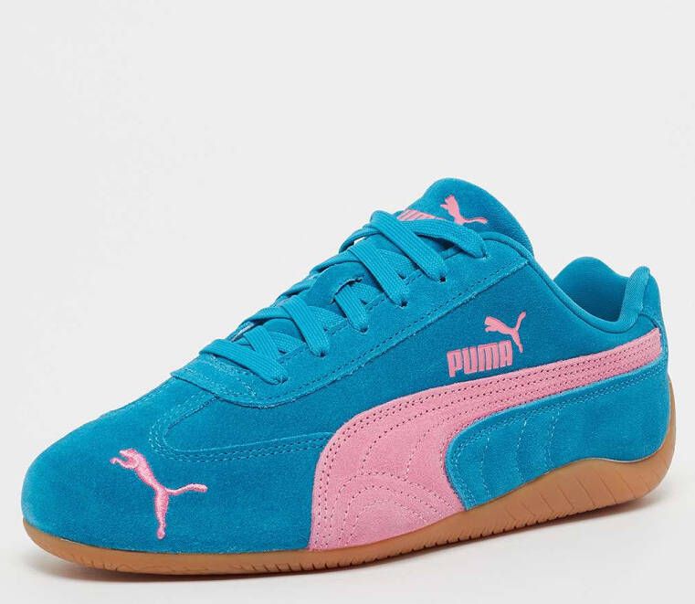 Voeg wat track-genspireerde energie toe aan je rotatie met deze Speedcat OG-sneakers voor dames van PUMA. In een Tropical Blue-kleurstelling met Poised Pink-accenten hebben deze low-profile sneakers een zacht sude bovenwerk voor een premium gevoel. Ze hebben een vetersluiting om je vast te houden, met lichte demping voor een soepele rit. Ze zitten boven een gripvast rubberen loopvlak voor totale grip en zijn ondertekend met het kenmerkende PUMA-merk en de iconische Formstrip op de zijwanden.. Material: Bovenwerk van leer/synthetische zool