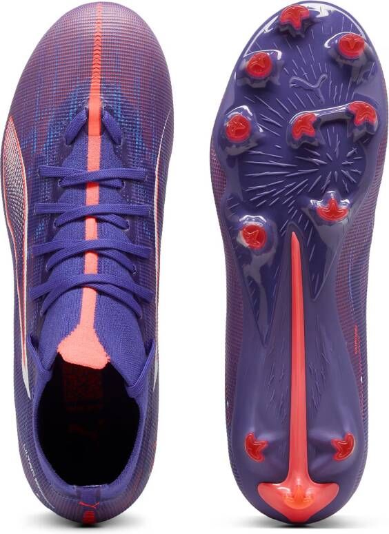 Hoe snel is Ultra Play? Maak je gordel vast. Deze versie van ULTRA is perfect voor degenen die net verliefd beginnen te worden op het prachtige spel, en heeft Puma's gloednieuwe speedsystem-buitenzool en FastTrax-noppen voor de meest optimale tractie. Deze voetbalschoenen hebben drie afgeronde noppen aan de zijkant, zodat je kunt wisselen tussen stevige ondergrond en kunstgras. Waar je ook speelt, geef vol gas.