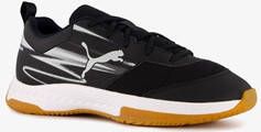 Zwarte Puma Varion II indoorschoenen voor kinderen. Het ademende buitenwerk is gemaakt van mesh en imitatieleer, het binnenwerk van textiel en de stevige profielzool van rubber. Voorzien van een vetersluiting en hiellusjes. De schoenen hebben een vast voetbed van textiel. Deze mooie zaalschoenen worden versierd met het Puma logo, witte design details op het buitenwerk en een gele zool.