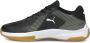 Deze zwart-grijze indoorschoenen van PUMA zijn perfect voor tijdens de gymles.- Bovenwerk: Mesh - Inlegzool: Softfoam, voor direct instapcomfort en zachte demping - Buitenzool: Rubber - Sluiting: Veter - PUMA-logo: Rondom