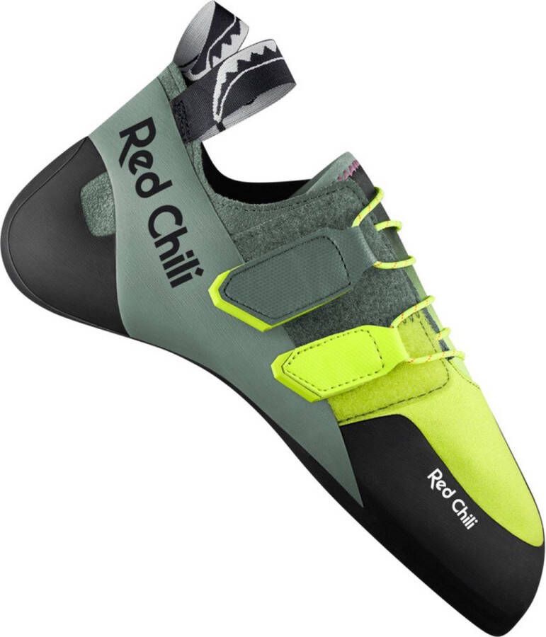 Red Chili - Clue - Klimschoenen. Ervaringsniveau: Gevorderde; Materiaaltype: microvezel; Materiaaltype: synthetisch materiaal; Sluiting: klittenband; Zool: Vibram XS Grip; Binnenzool: synthetisch; Randen: licht assymmetrisch; Downturn: agressief; Voorspanning: sterk; Terrein: plaat; Terrein: overhang; Terrein: verticaal; Extra's: aantreklussen; Extra's: toe-hookrubber; Ervaringsniveau: Gevorderde; Voorspanning: Sterke voorspanning; Downturn: Sterke downturn; Zool: Vibram XS Grip