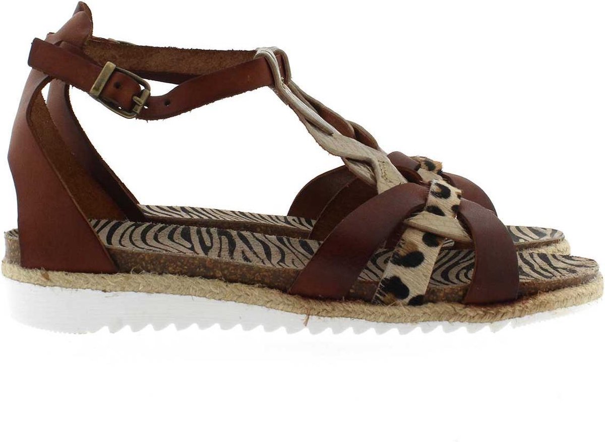 Sandalen | Handgemaakt in Spanje | Leer | Cognac Een sandaal voor de fashionista's; onze cognac sandalen. Dit model is een mix van dierenprint op ponyhaar en soepel leer. De bandjes over de voet maken hem speels en toch stoer. Ook het voetbed is gemaakt van leer en zorgt voor de support tijdens het lopen. Sluit deze sandaal met het gespje aan de zijkant. Perfect model voor deze zomer! Ook beschikbaar in de kleur zwart.