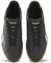 zwart leer/canvas vlakken zijstreep logopatch aan de zijkant geperforeerd detail ronde neus veters aan voorkant logopatch op de tong logo op het hielstuk binnenzool met logo platte rubberen zool