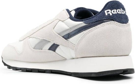 Lichtgrijs, marineblauw, kalfssude, logopatch aan de zijkant, logopatch op de tong , logo op het hielstuk, amandelvormige neus, veters aan voorkant en platte rubberen zool.