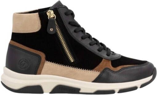 Remonte dames hoge sneaker Hoge sneakers zijn de perfecte schoen voor het najaar en zitten super lekker. Een goede mix tussen stijl en comfort. Uitgevoerd in een combinatie van verschillende leersoorten en imitatieleer. Met de rits trek je de sneakers makkelijk aan. Gevoerd met velboa, kortharig imitatiebont. Dit zit heerlijk zacht en houdt de voeten warm wanneer het weer kouder wordt. Voorzien van een RemonteSoft-voetbed. Deze is gemaakt van traagschuim en biedt lichte ondersteuning onder de voetboog en ventilatie dankzij de perforatie onder de voorvoet. Het voetbed is tevens uitneembaar. Afgewerkt met een gripvast rubberen loopzool voor betere stabiliteit.