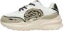 Laat de jongsten meedoen met de dadsneaker-trend met dit veelzijdige lage sneakermodel Athena Jr-1 van het merk Replay. Gemaakt van wit mesh textiel en roomwit nylon aan de zijkant met overlays in beige, goud, zwart en wit. Opvallende kenmerken zijn onder andere de veterlusjes, het merklabel op de zwarte tong en de loopzool. Andere opvallende details zijn het oversized logo aan de zijkant in goudglitters en zwart lak, gemleerde veters en de lichtroze inzet in de zool met merkrelif voor goede hielondersteuning. De grove zool met sterrenrelif aan de hiel en het gripvaste profiel zijn helemaal volgens de laatste trends. Maak een statement met dit item en toon jouw unieke stijl!