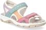 Rieker dames sandaal Deze kleurrijke sandaal uit onze Rieker-collectie is een leuke toevoeging aan je voorjaars-garderobe. Uitgevoerd in imitatieleer. Door de verstelbare banden kun je de pasvorm aanpassen aan jouw voet. De banden hebben een textielen voering voor een zacht draaggevoel. Bevat een voorgevormd voetbed met textielen bekleding. Het voetbed biedt hierdoor goede ondersteuning en demping. Afgewerkt met een rubberen profielzool met goede grip.