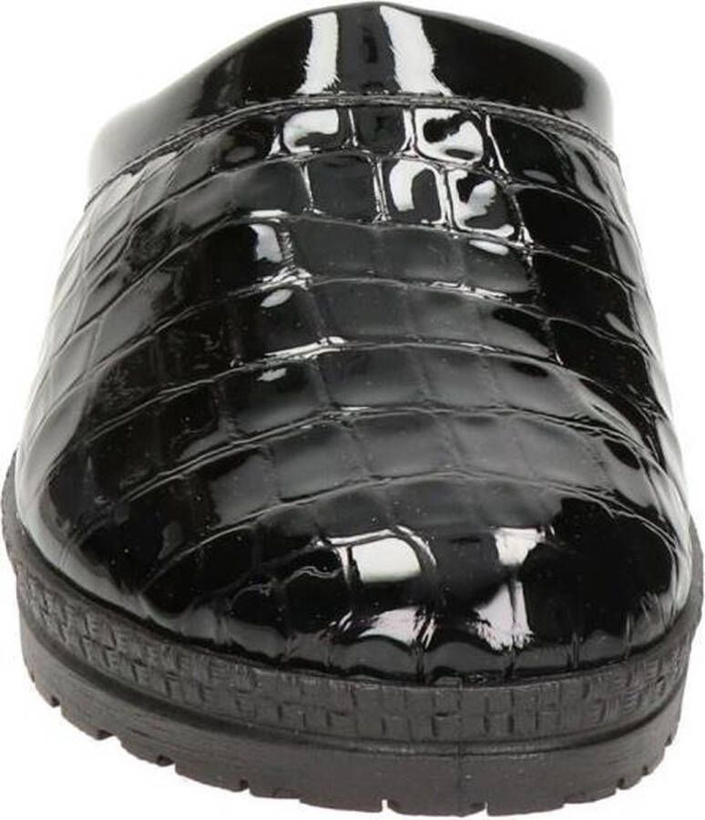 Comfortabele damesmuil van het merk Rohde in lak zwart. Deze pantoffel is gemaakt van leer en gevoerd met zacht textiel. De loopzool is gemaakt van kunststof.
