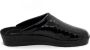 Rohde damesslipper. Deze huisschoen/pantoffel van Rohde heeft als artikelnummer: 2299-90. De kleur is zwart in het lak met een croco print. De slipper heeft een kleine hakverhoging voor extra draagcomfort. De voering is van textiel.