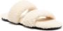 Gebroken wit, lamsleer, lamsleer, open neus, design met dubbele bandjes en platte zool.