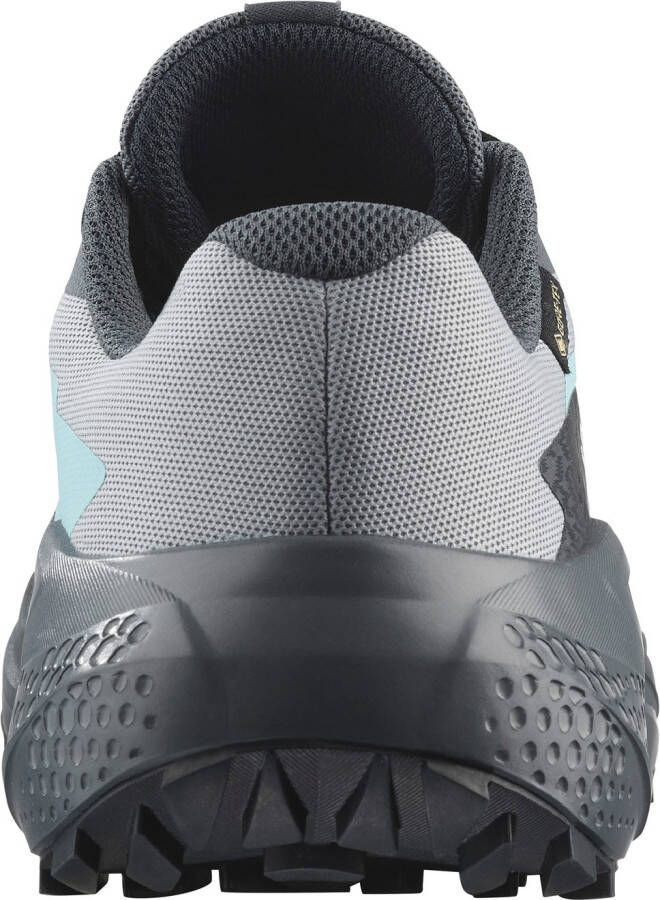 Salomon - Women's Alphaglide GORE-TEX - Trailrunningschoenen. Materiaaltype: synthetisch materiaal; Materiaaltype: textiel; Membraan: ja; Sluiting: veters; Zool: Contagrip; Ondergrond: all terrain; Profieldiepte: 3, 5 mm; Binnenzool: met OrthoLite-inlegzolen; Zoolhoogte (hak): 30 mm; Drop: 8 mm; Referentie maat: per paar in gemiddelde maat; Extra's: verstevigde schoenpunt; Overige gegevens: Optivibe-schuim voor het absorberen van schokken; Demping: Gemiddeld; Demping: Veel