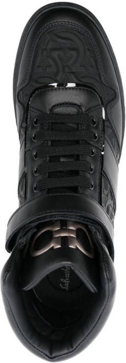 Zwart, kalfsleer, all-over logo-relif, logopatch op de tong , tweeweg ritssluiting aan de voorkant, vetersluiting aan de voorkant en platte rubberen zool.
