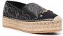 Geborduurd logo op de voorzijde, horsebit detail, ronde neus, slip-on stijl, geweven raffia design en binnenzool met logo. Materiaal: leder.