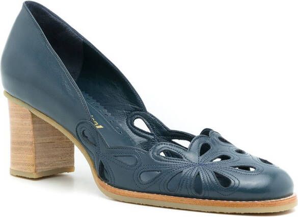 Uitgesneden detail , ronde neus, slip-on stijl, binnenzool met logo en halfhoge hak. Materiaal: leder.