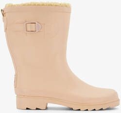 Lichtroze regenlaarzen voor dames. Deze stijlvolle regenlaarsjes zijn voorzien van een decoratieve gesp aan de bovenzijde. De laarsjes zijn gevoerd met imitatiebont. Volledig gemaakt van rubber. Let op: deze laarzen vallen klein. We raden je aan om een maat groter te bestellen.