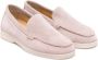 Poederroze, kalfssude, design met vlakken, biesdetail, ronde neus, slip-on stijl, leren binnenzool met logo, lage blokhak en rubberen zool.